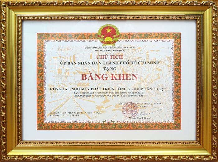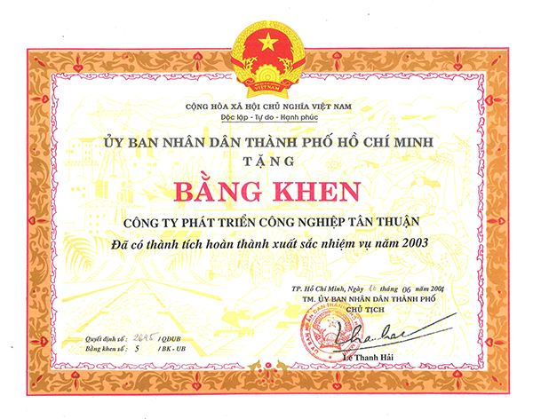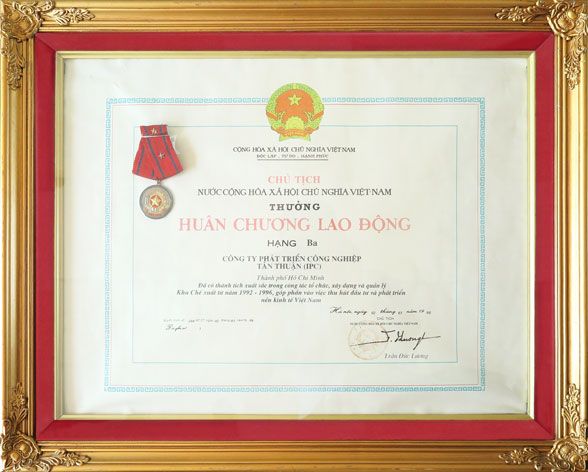 3. Huân Chương Lao động hạng Ba: "Đã có thành tích xuất sắc trong công tác tổ chức xây dựng và quản lý KCX từ năm 1992 – 1996 góp phần vào việc thu hút đầu tư và phát triển nền kinh tế Việt Nam" (Quyết định số 180KT/CT ngày 02 tháng 03 năm 1998).