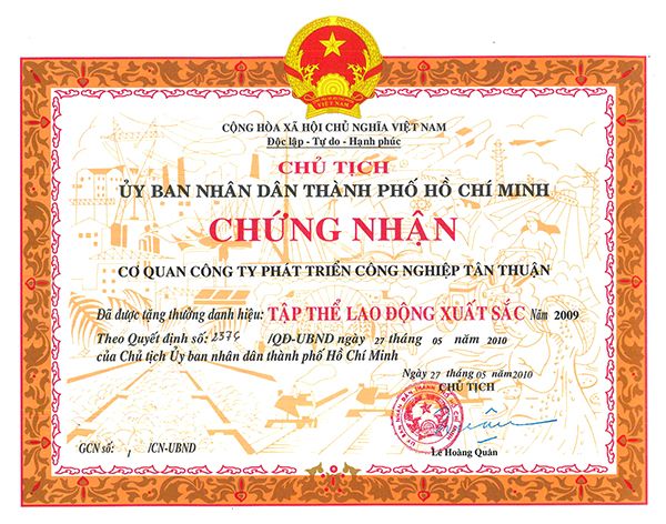2. Danh hiệu "Tập thể lao động xuất sắc: được UBND Thành phố Hồ Chí Minh công nhận và được tặng thưởng Bằng khen từ năm 2009 đến năm 2012 (QĐ số 1155/QĐ-UBND ngày 11/03/2011)